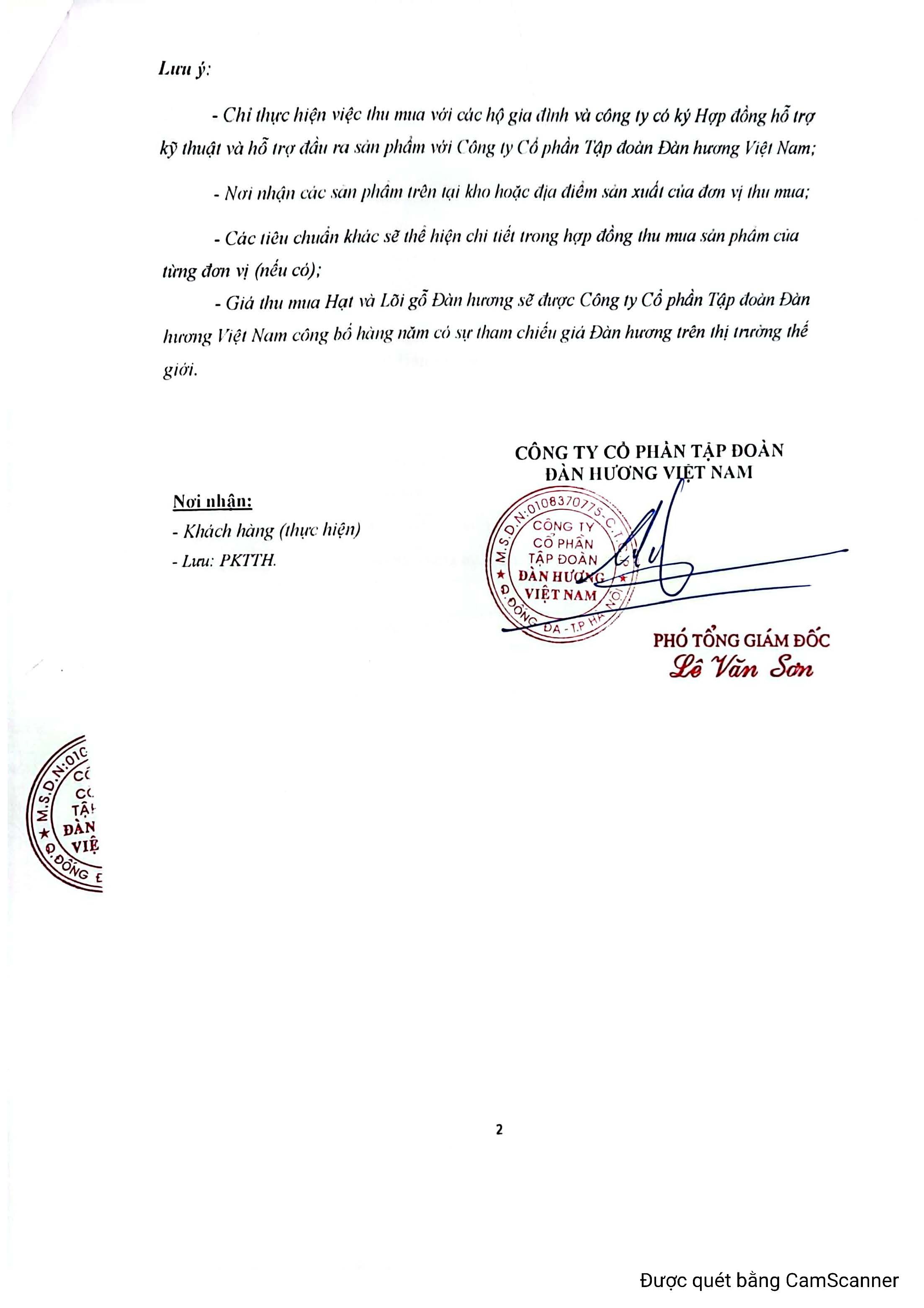 Đối tượng áp dụng: Khách hàng là cá nhân hoặc tổ chức đã ký hợp đồng hỗ trợ bao tiêu sản phẩm với Tập Đoàn Đàn Hương Việt Nam.