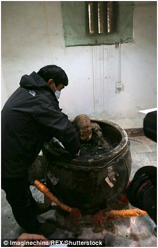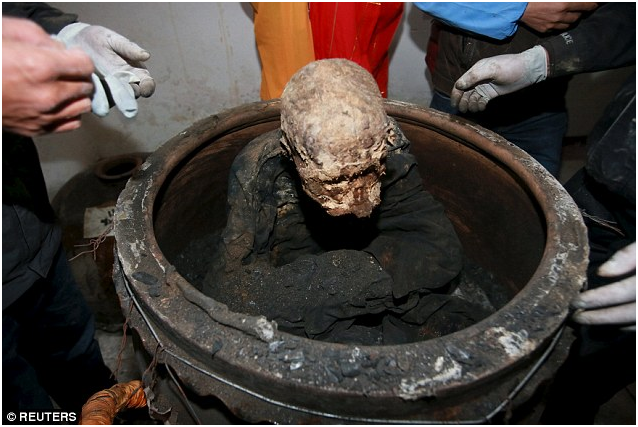 Nghi lễ tôn giáo đưa xác ướp nhà sư ra khỏi bình