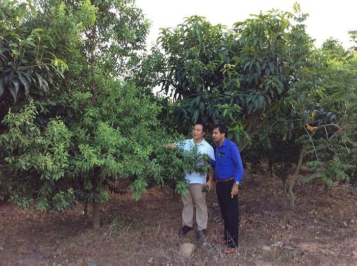 TS. Vũ Thoại và chuyên gia Ấn Độ tại một vườn trồng đàn hương