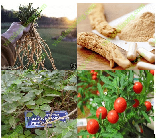 Là loài cây bụi, lá hình bầu dục và hoa màu vàng; trái cây màu đỏ, có kích thước bằng một quả nho khô. Ashwagandha mọc tự nhiên nhiều ở những khu vực khô của Ấn Độ và vùng Địa Trung Hải, Trung Đông và một số nước Châu Phi.