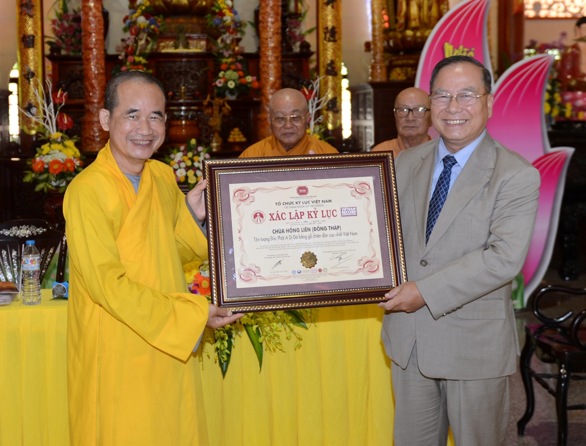 Vào ngày 28/10/2016, Kỷ lục Tôn tượng Phật A Di Đà bằng gỗ chiên đàn cao nhất Việt Nam đã chính thức được công bố.