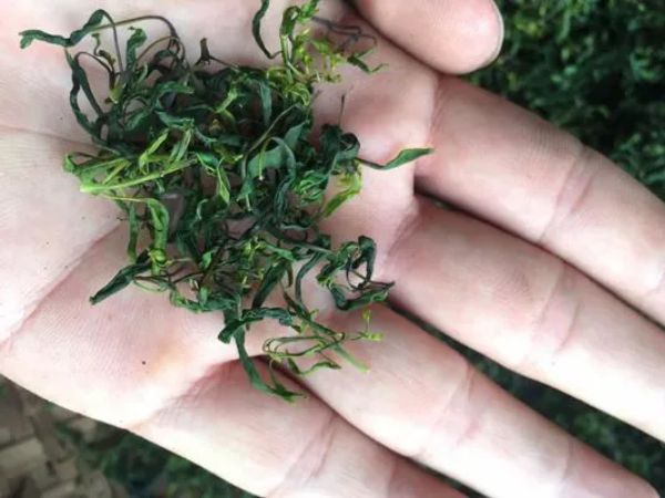 Cách vò như sau: lấy một nhúm lá cho vào lòng bàn tay và dùng hai tay xoay tròn như xoay viên bột, xoay nhiều lần như vậy thì để xuống và xoay tiếp những lá còn lại.