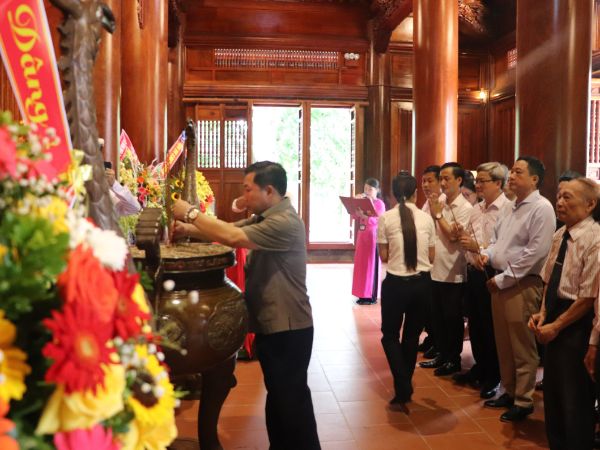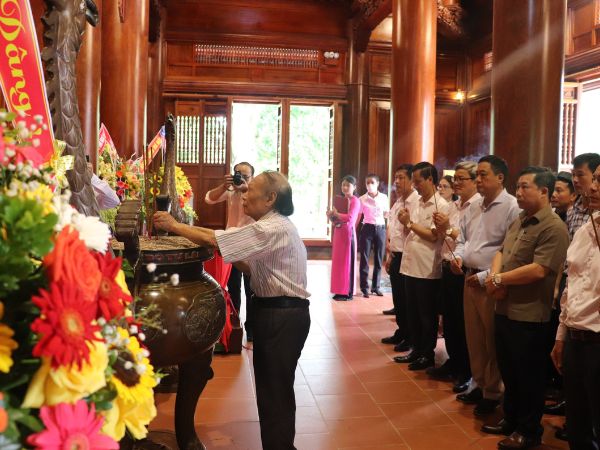 Trong không khí trang nghiêm của buổi lễ, đoàn đại biểu đã bày tỏ lòng thành kính, dâng hoa, dâng hương trước phần mộ cụ Hà Thị Hy - bà nội của Chủ tịch Hồ Chí Minh; phần mộ Bà Hoàng Thị Loan - thân mẫu của Chủ tịch Hồ Chí Minh; phần mộ em trai Bác là Nguyễn Sinh Xin.