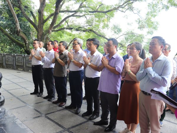 Đoàn dâng hương tại mộ cụ Hà Thị Hy - Bà nội Bác Hồ