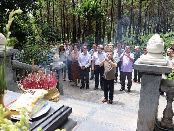 Tiến Sĩ Vũ Thoại - Chủ tịch HĐKH Viện thành kính dâng hương tại mộ bà Hoàng Thị Loan