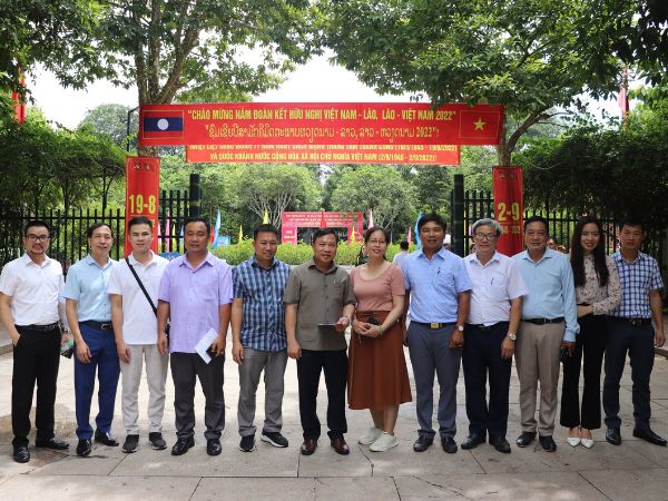 Đoàn tham quan chụp ảnh lưu niệm tại khu di tích Kim Liên
